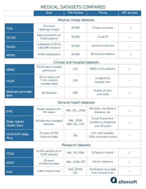 examples of data sets in healthcare